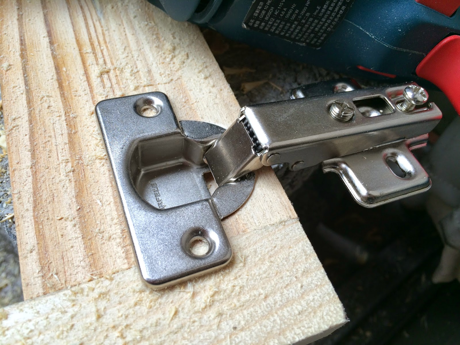 絞鍊裝上,應該往上面一點點的地方挖,這個位置鎖螺絲剛好在木條的接縫處不太好